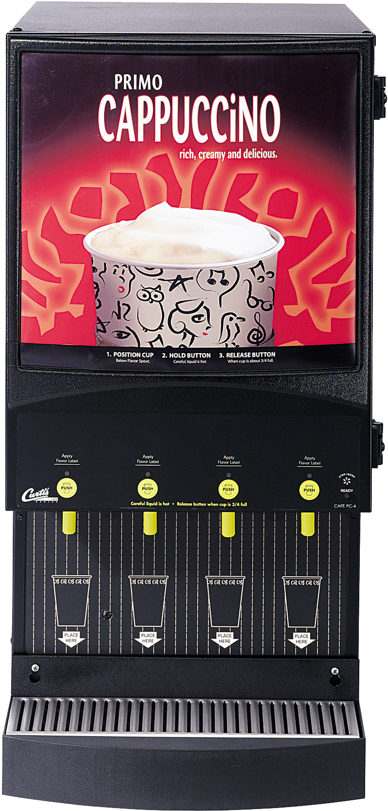 Enrich your profits while delighting your customers with the beautifully styled Café Primo Cappuccino machine from Curtis. You don’t need large volume or big counters to make the Café PC a highly profitable success. The compact Curtis Café PC offers commercial quality at an exceptional value. Café PC models share many critical components with Curtis’ Generation Three Primo Cappuccino Systems, so you get all the benefits of a professional machine without the high-end features you may not need. And, the Café PC is available in multiple drink models for maximum flexibility. Step up to rich cappuccino dispensing and start earning robust profits from the first day with the Café PC from Curtis.