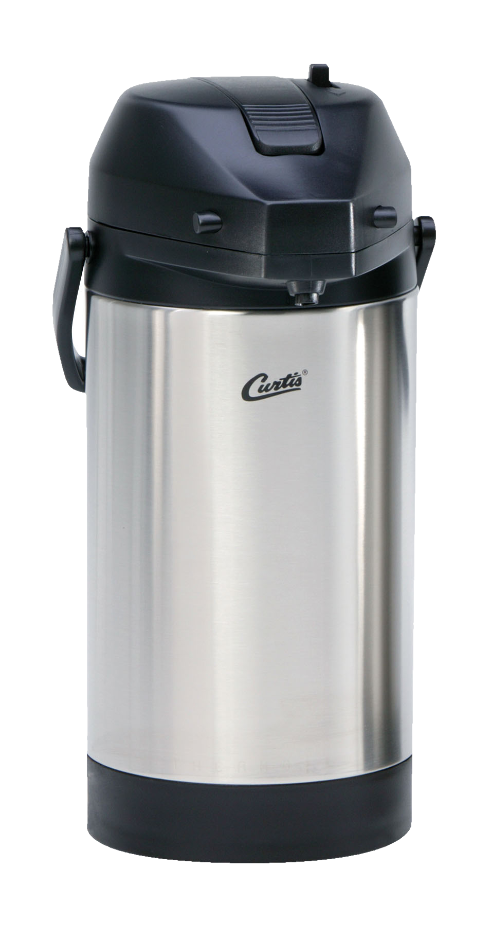 Vacuum sealed Curtis Airpots keep your fresh-brewed coffee, fresh-brewed tasting. Alone on a counter or multiple airpots in a rack they make a convenient, quality self-serve coffee center. Curtis Lever Airpots are available in 2.2L, 2.5L, 3.0L and 3.8L (1 gal.) capacities. Gravity Airpots are available in standard 2.5L only. They’re packed full of design features to make filling, dispensing and maintaining coffee centers easy.
